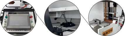The saw blade automatically swings at an angle of 45° and 90°, and