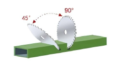 The saw blade automatically swings at an angle of 45° and 90° , and