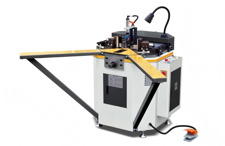 LMB-SZ-120B Support Non-Standard Customization Power supply: 380V/50Hz Total motor power: 2.2 kW Motor speed: 1400 r/min Operating pressure: 0.6–0.8 MPa Air consumption: 2 L/min Rated pressure: 16 MPa Extrusion pressure: 48 KN Motion stroke of angle cylinder: 85 mm Adjustment range of positioning block: 54 mm Height of machined profile: 90 mm Overall dimension: 1850 × 1180 × 1210 mm Weight: Approx. 450 kg